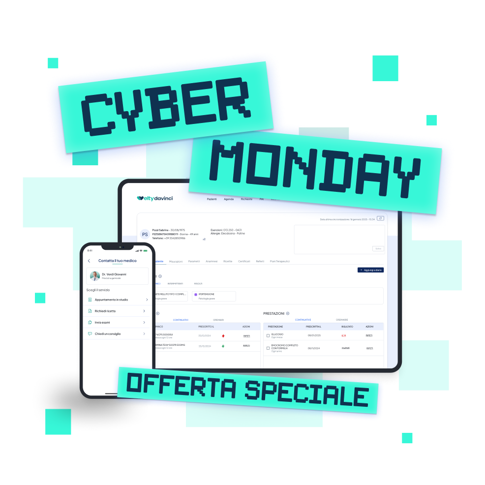 Moderna, innovativa e totalmente in-cloud. Gestisci prescrizioni, referti e certificati con applicazioni di Intelligenza Artificiale. Funziona anche su MacBook di Apple.